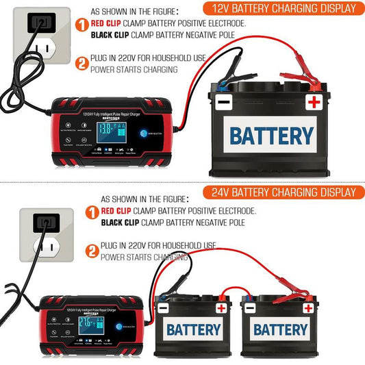 Car Battery Charger,8 Amp 12V and 24V Smart Automatic Car Battery Charger with LCD Screen Pulse Repair Charger Pack Battery Maintainer for Car, Lawn Mower, Motorcycle, Boat, SUV and More