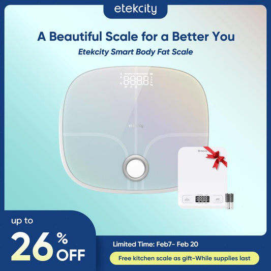 Etekcity Smart Scale, Digital Rechargeable Bathroom Weighing Monitor with BMI, Body Fat, Body Composition Analyzer, Bluetooth to App, Health Tracker