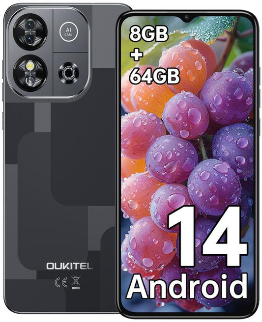OUKITEL C57S Cell Phone Android 14 Smartphones - 8GB+64GB Mobile Phones, 6.52 Inch HD+, 4300 Mah Smartphone for Teenagers, Octa-Core Smart Phone 13 MP + 5 MP Cell Phones 4G Dual SIM Simlock-Free Cell Phones, Face, GPS, Black (Compatible with T-Mobile)