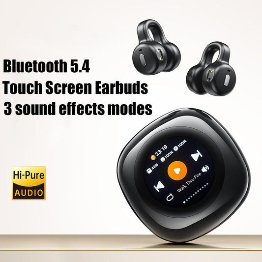 Open Ear Clip Ear Tips Earless Jacket Air Bone Conduction Headphones Wireless Bluetooth OWS Hanging Headphones 5.4 Bluetooth for Outdoor Workouts, Students, Office External Ear Clip-On Headphones Earbuds with Touch Screen Audio Charging Noise Headset