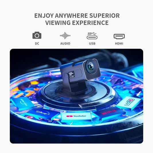Projector Hy320Mini, Support 1080P Smart Projector, Built-In Android TV 11.0, with Wifi and Bluetooth, Automatic Keystone Correction, 180 Degree Rotating Short-Throw Projector