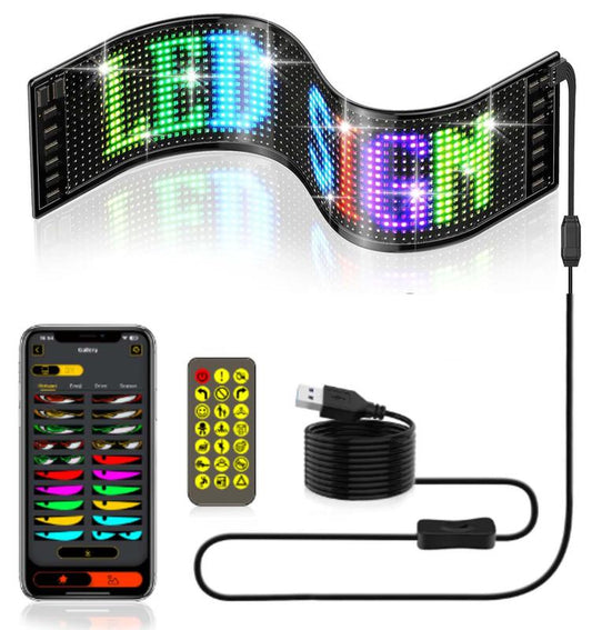 Programmable Led Sign, 14''X4'' Pre-Made Animations & Customizable Text Led Car Sign, Bluetooth APP Control Scrolling LED Sign, Custom,Graffiti Flexible Led Matrix Panel for Car Store Hotel Holiday